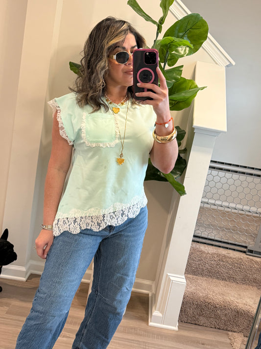 Mint Lace Trim Top
