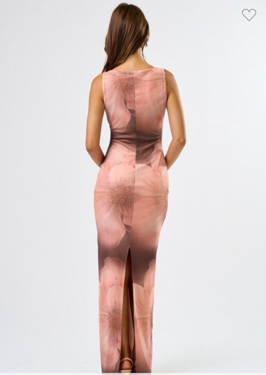 Floral Brown Mesh Maxi Dress