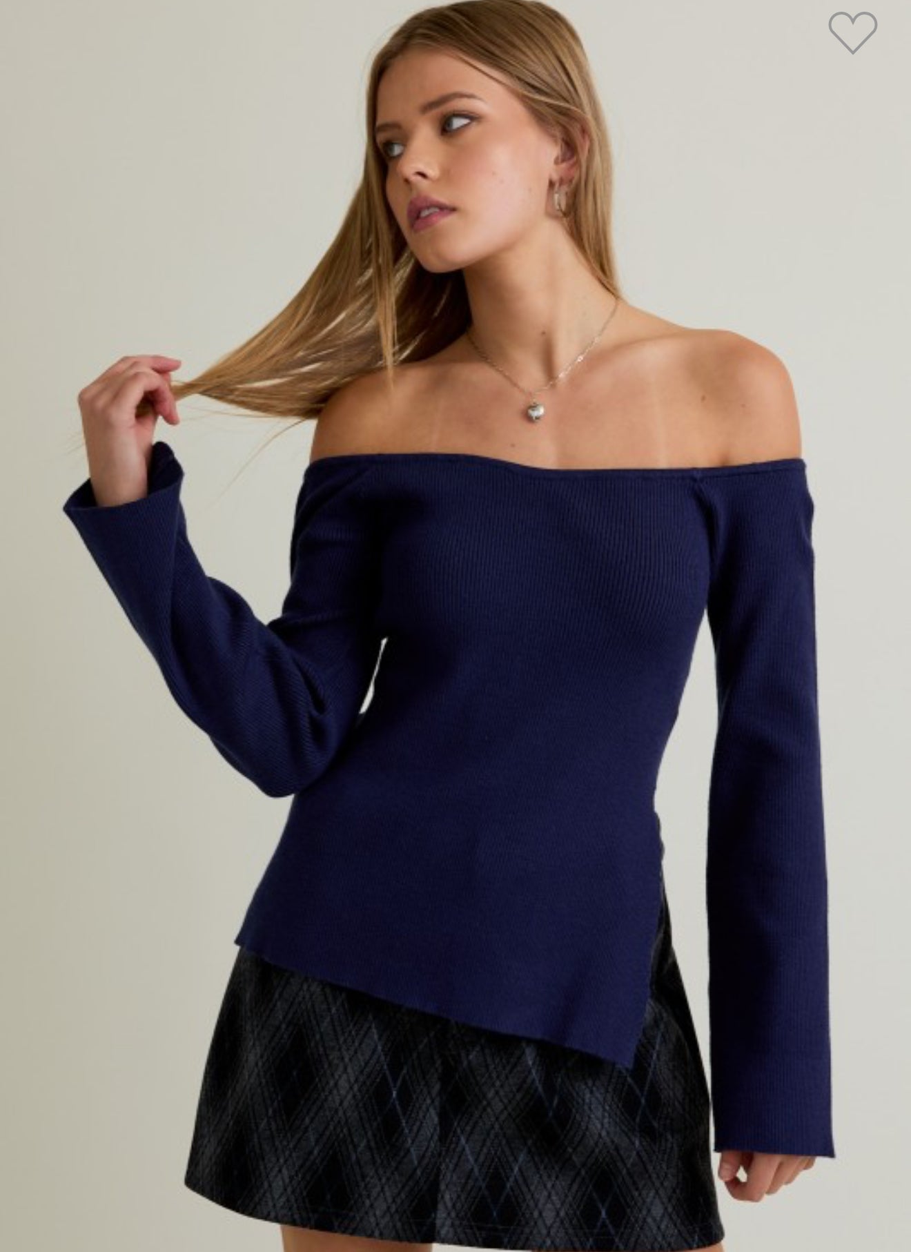 Navy Side Slit Off shoulder top