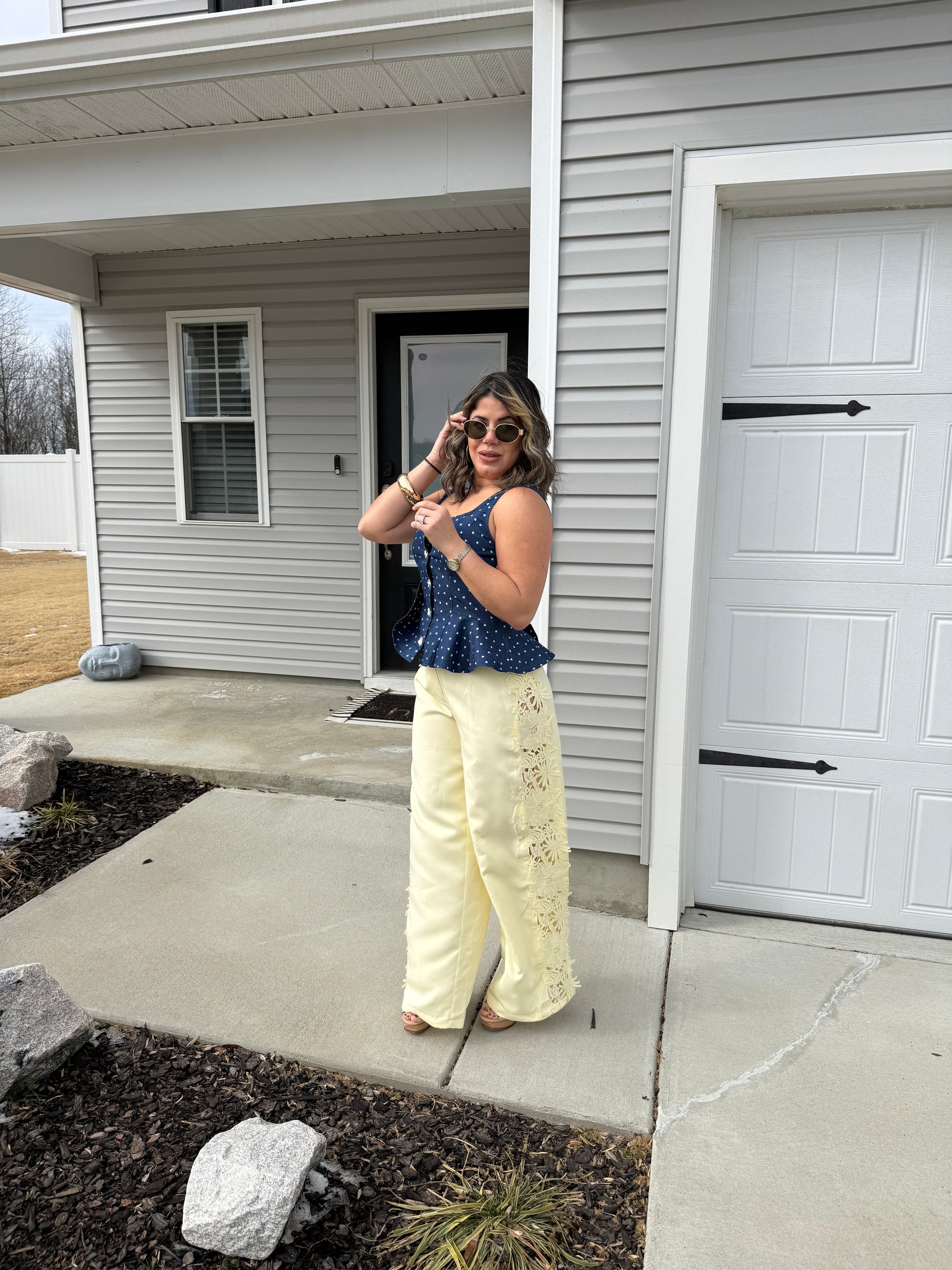 Yellow lace side pants